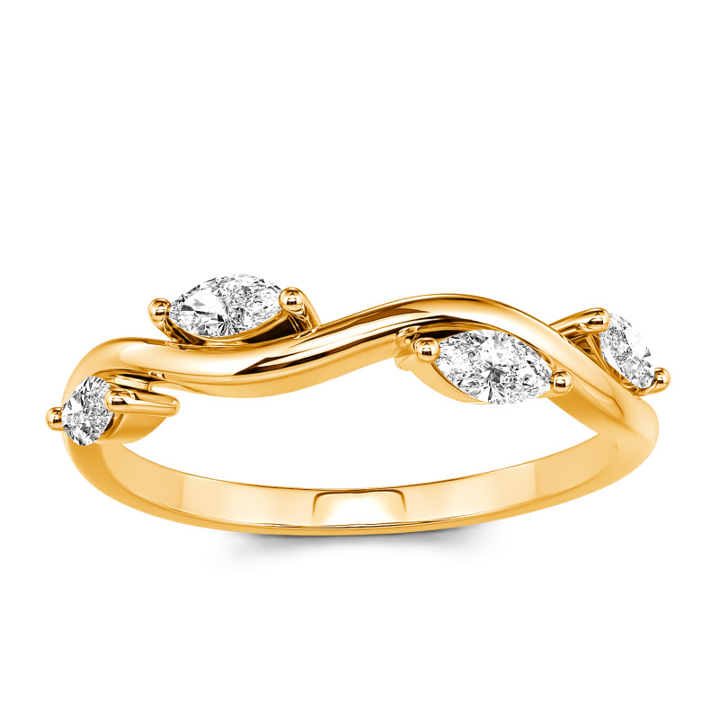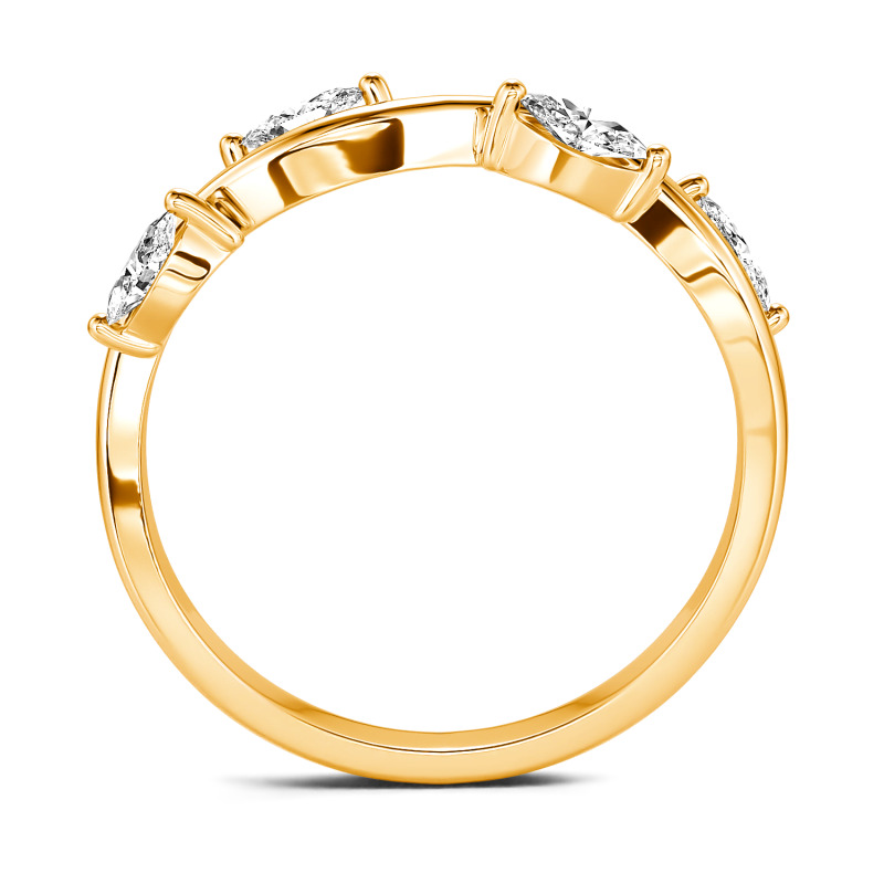 This whimsical ring is wonderfully designed into a branch and leaf shape with the dainty curve outlining four marquise-cut glistening stones. The shining moissanite leaves nestle quietly and lively on the slender branch. Graceful, low-pitched, and timeless, the lovely feminine ring is ideal for an anniversary gift or everyday accessory. She will fall in love with the simple but unique style at the first sight.