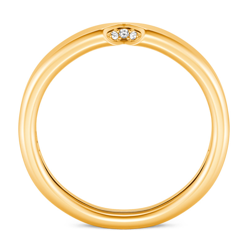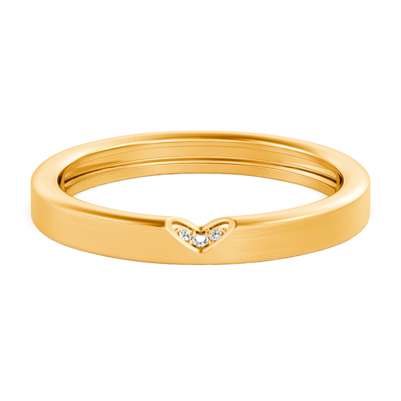Crafted from sterling silver, this custom men's wedding band boasts a wonderful brushed finish. The standout feature is a distinctive v-shaped notch set with three sparkling stones, ingeniously designed to complement the heart-shaped point on the matching women's ring. Elevate this meaningful design by customizing the metal and stone colors to reflect your individual style and preferences. Whether you opt for classic silver with white stones or explore bolder combinations, this versatile mens wedding band offers comfort for everyday wear while making a statement about your commitment.