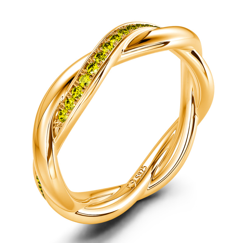 A twisted women wedding ring that has two bands intertwined in a vine-like fashion. This beautiful and delicate wedding ring is formed by two intertwining bands, one of micropave set stones and one of solid sterling silver for an elegant statement, you can follow your budget to custom your perfect wedding rings at Jeulia.