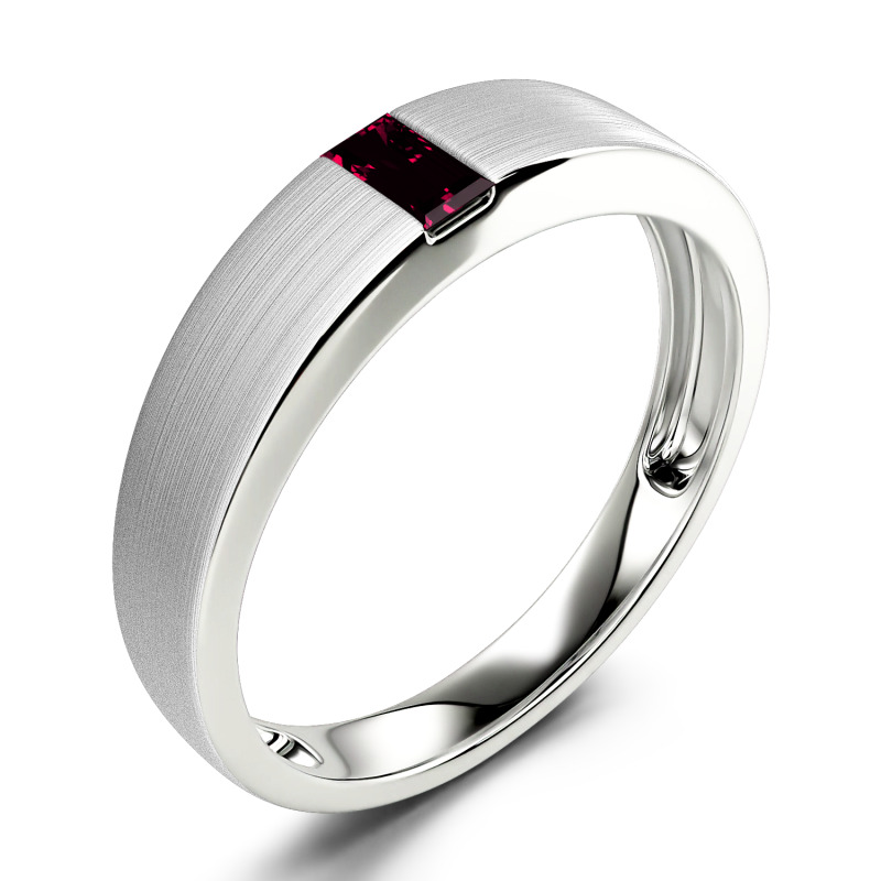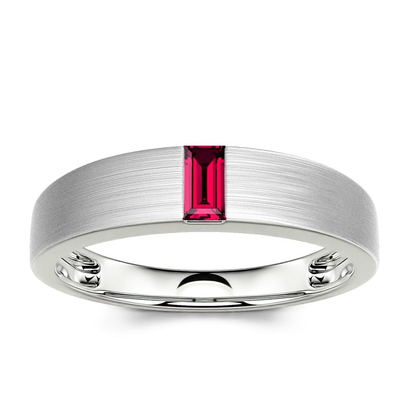 Use this charming band to celebrate your loving commitment and seal your vows in style. With the liberal brushed finish, the dashing men’s band features an emerald-cut shimmering stone encapsulated in the refined band. Radiant with shining solitaire, this comfort-fit wedding band is a symbol of faithful and everlasting love, and its generous design never succumbs to trends.