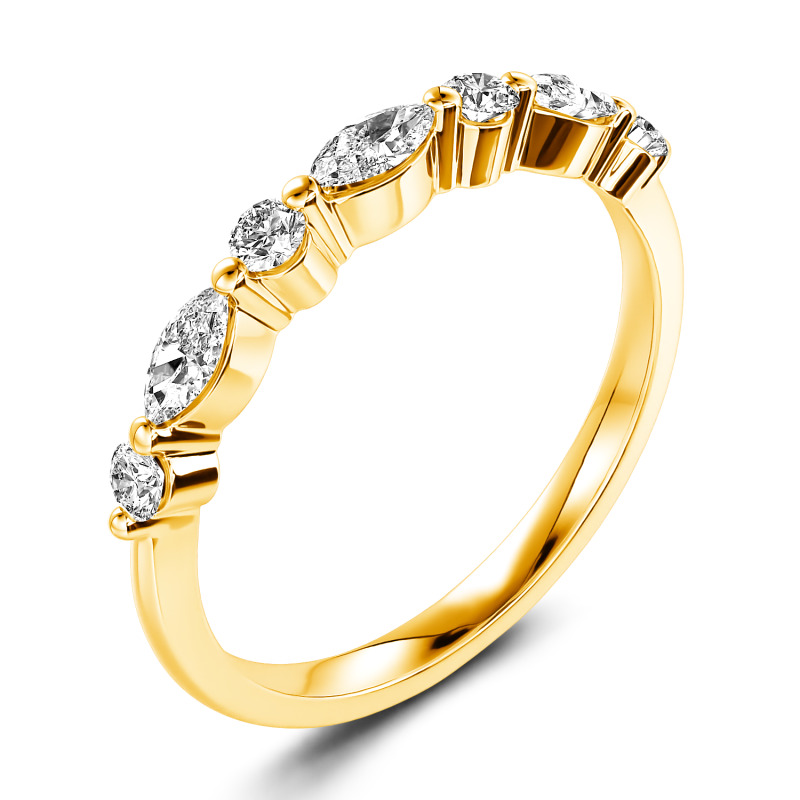 Jeulia 10K/14K/18K Gold Platinum Alternating Round & Marquise Cut Band