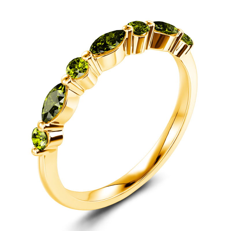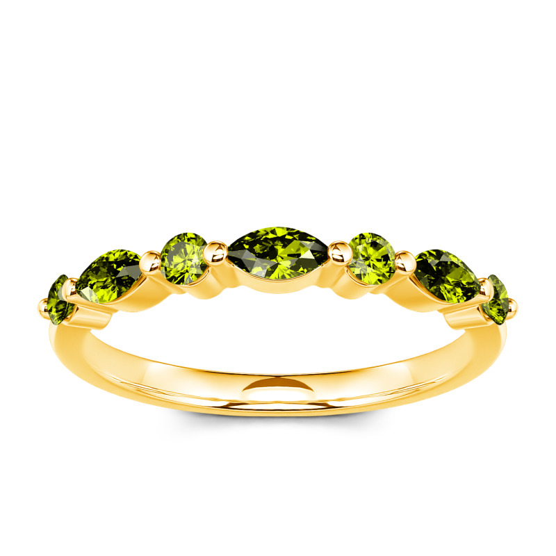 The lustrous moissanite stones are presented in an alternating fashion, set within marquise and round frames to shine gorgeously with the perfectly polished gold band. Vintage-inspired, a sparkling row of stones combines with the gleaming gold - a simple design that she can wear every day. Bring her a surprise on a special day. This gracious band is a thoughtful gift to commemorate your anniversary and memorialize your years spent together.