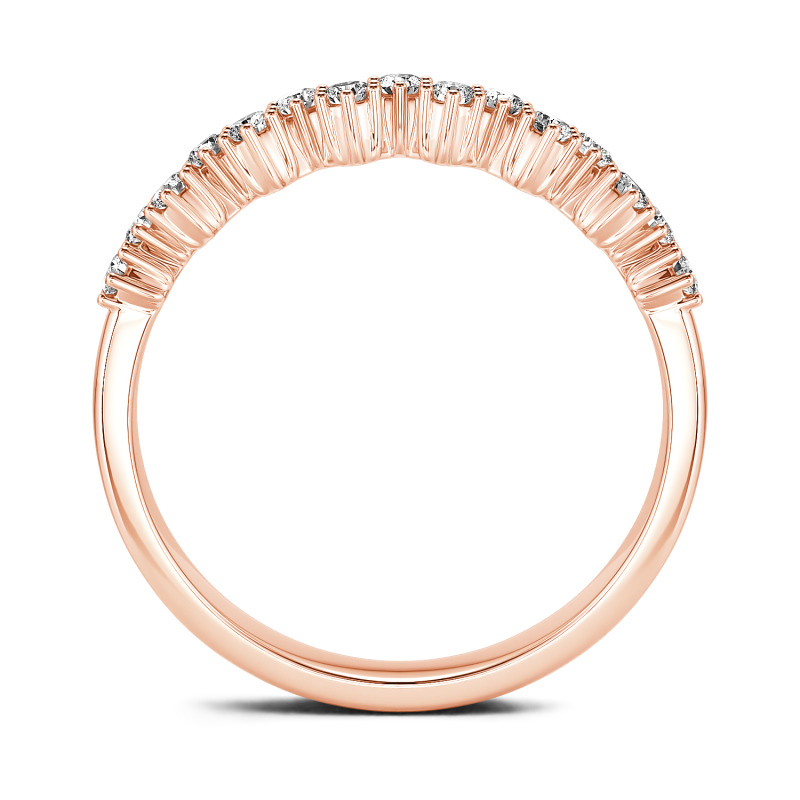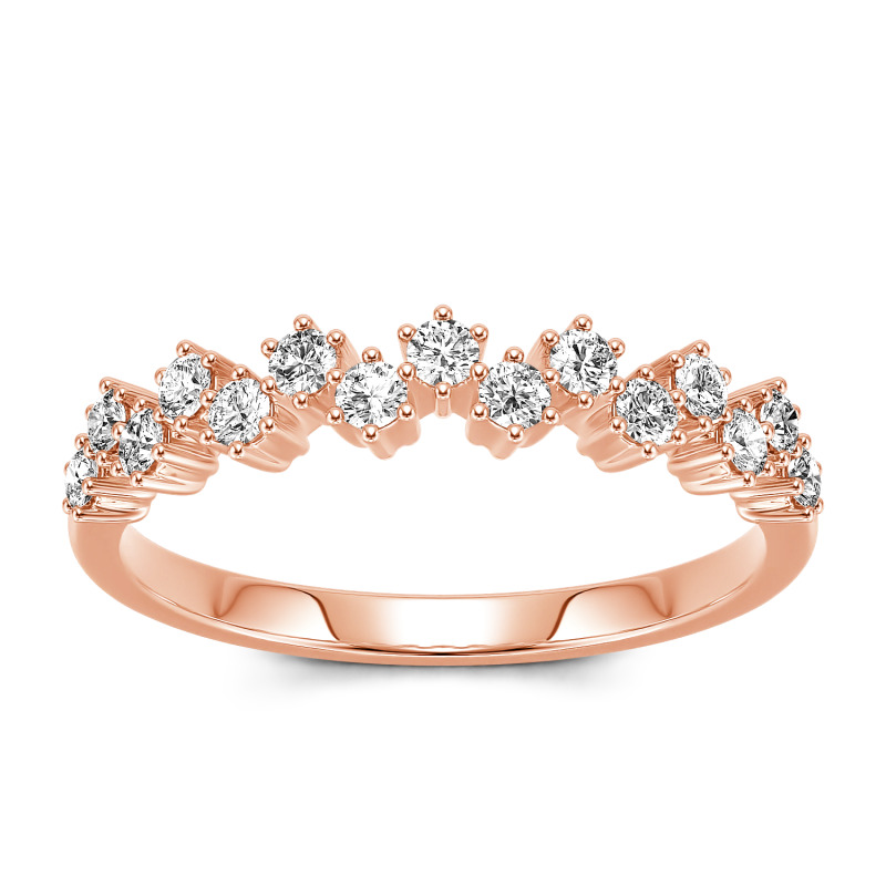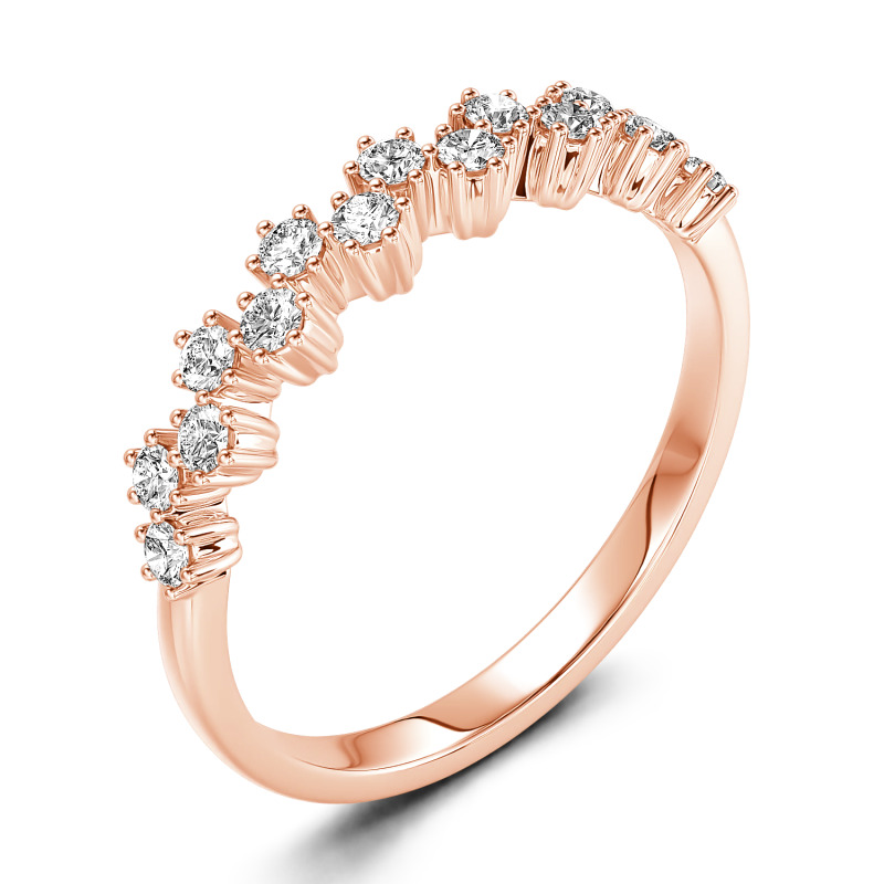Like your love, this moissanite anniversary band is a classic that never goes out of style. Stunning prong-set stones in a sculptural alternating pattern appear to float above the finger for an effortless, unique look. Its simple style is fit for every lady. You can wear it separately or stack it with other rings. Treat yourself with this piece.