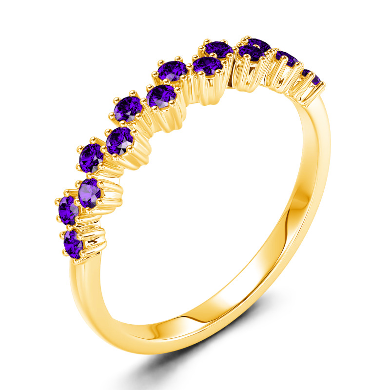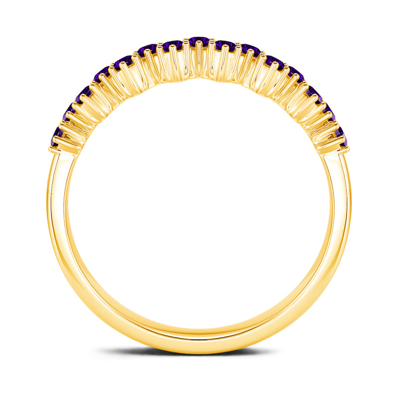 Like your love, this moissanite anniversary band is a classic that never goes out of style. Stunning prong-set stones in a sculptural alternating pattern appear to float above the finger for an effortless, unique look. Its simple style is fit for every lady. You can wear it separately or stack it with other rings. Treat yourself with this piece.