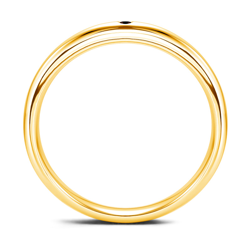 This classic moissanite band is a symbol of enduring love. Timeless and traditional, it features an alluring addition of a round-cut stone set into its band. The tone imbues this piece with a contemporary resonance. Dedicatedly created, the ring serves as a visual reminder of a loved one, making a natural choice for a wedding ring.