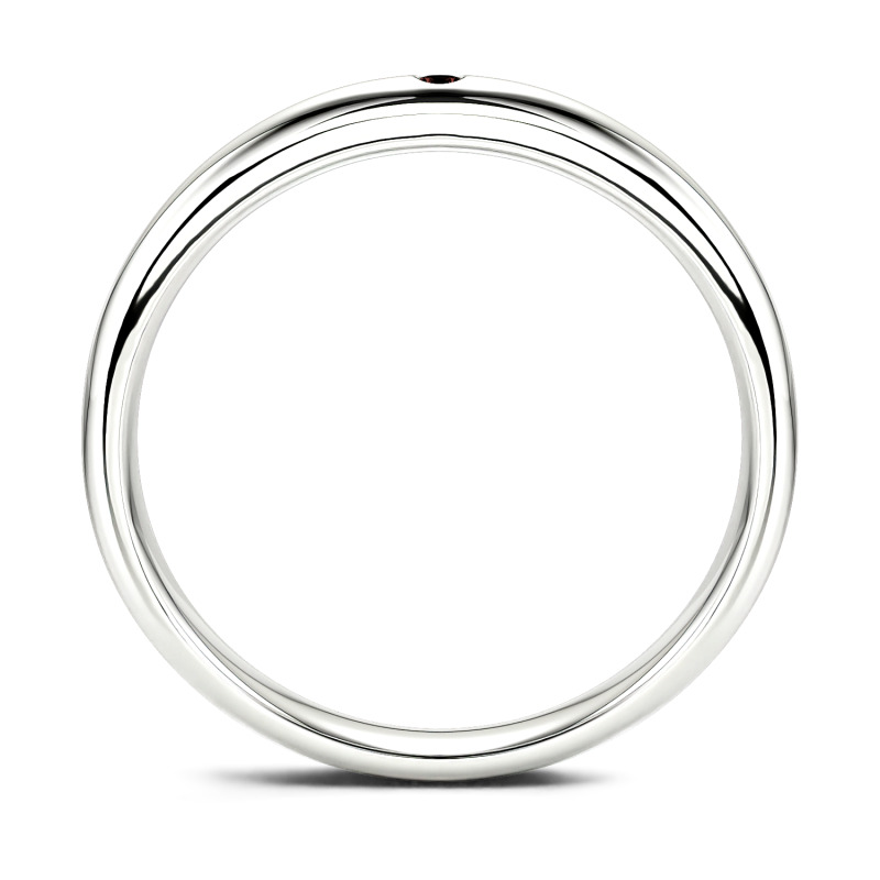 This classic moissanite band is a symbol of enduring love. Timeless and traditional, it features an alluring addition of a round-cut stone set into its band. The tone imbues this piece with a contemporary resonance. Dedicatedly created, the ring serves as a visual reminder of a loved one, making a natural choice for a wedding ring.