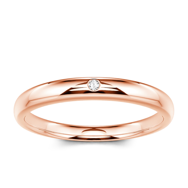 This classic moissanite band is a symbol of enduring love. Timeless and traditional, it features an alluring addition of a round-cut stone set into its band. The tone imbues this piece with a contemporary resonance. Dedicatedly created, the ring serves as a visual reminder of a loved one, making a natural choice for a wedding ring.