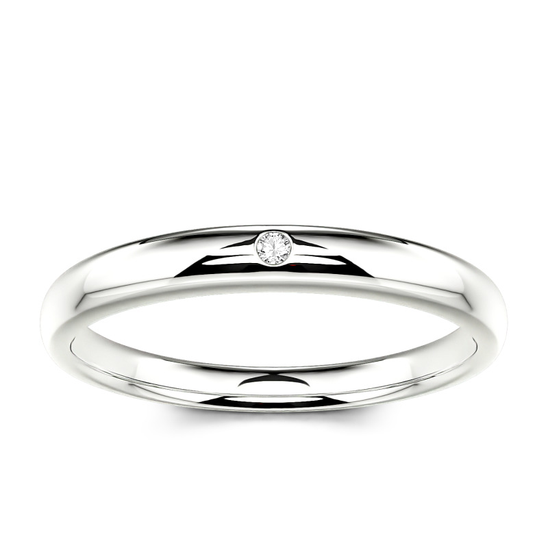 This classic moissanite band is a symbol of enduring love. Timeless and traditional, it features an alluring addition of a round-cut stone set into its band. The tone imbues this piece with a contemporary resonance. Dedicatedly created, the ring serves as a visual reminder of a loved one, making a natural choice for a wedding ring.