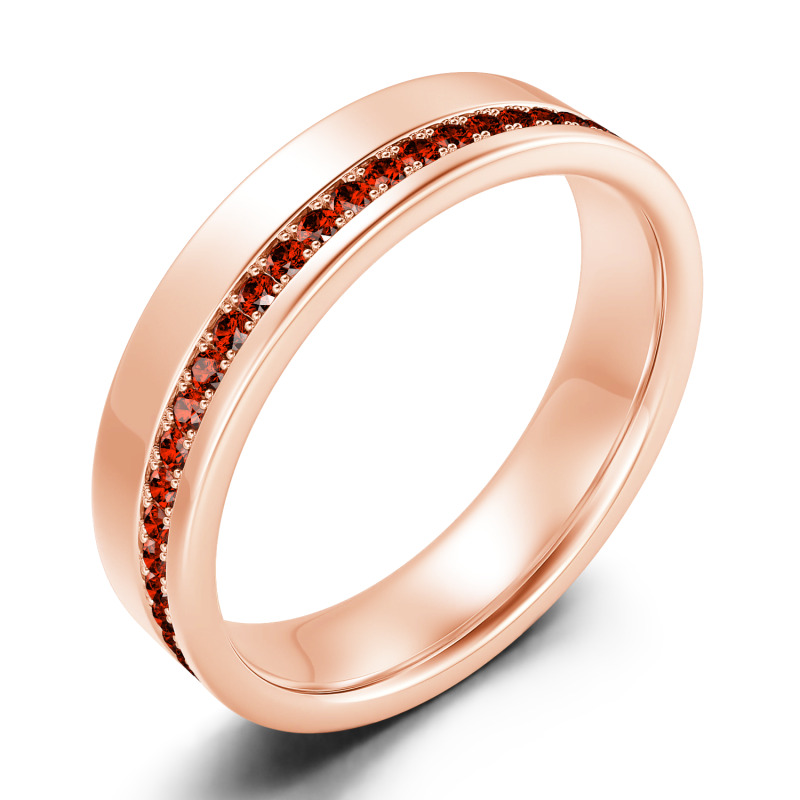 On your anniversary or wedding day, honor the man you love with a ring worthy of his affections. This unique design features a ribbon of petite channel-set stones along the edge of the modern polished look. Buffed to a brilliant shine, this ring is an elegant symbol of your marriage commitment.