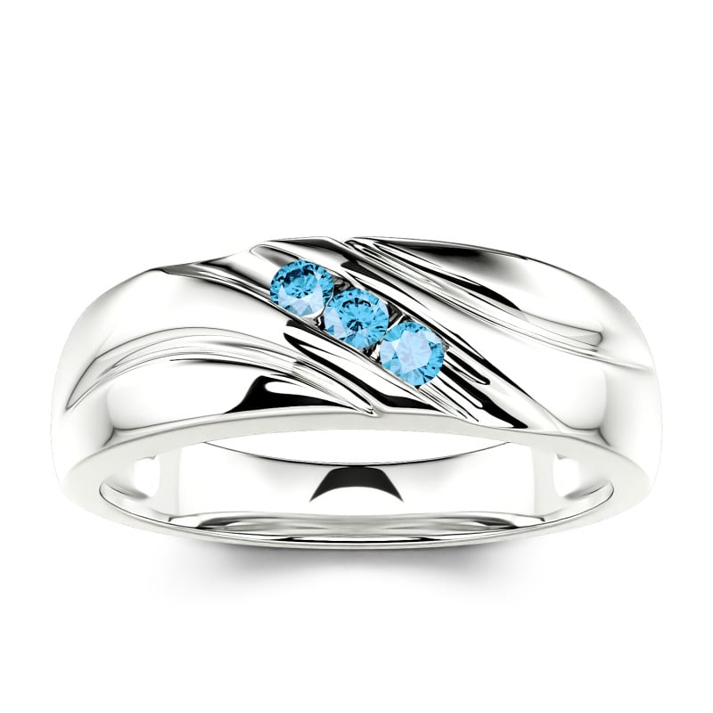Jeulia 10K/14K/18K Gold Platinum Round Cut Three Stone Men's Band