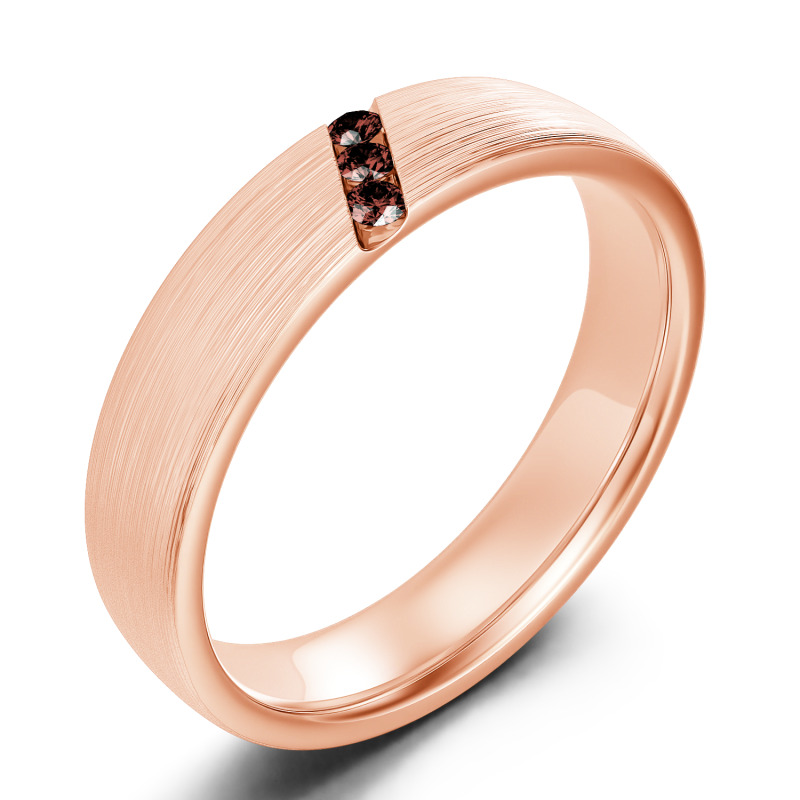 He'll appreciate the sleek design of this moissanite wedding band. A striking diagonal line of stones creates a unique, eye-catching design in this matte-brushed ring. The inside of the shank is rounded for comfortable wear. Buffed to a brilliant luster, this comfort-fit wedding band seals your vows in style.