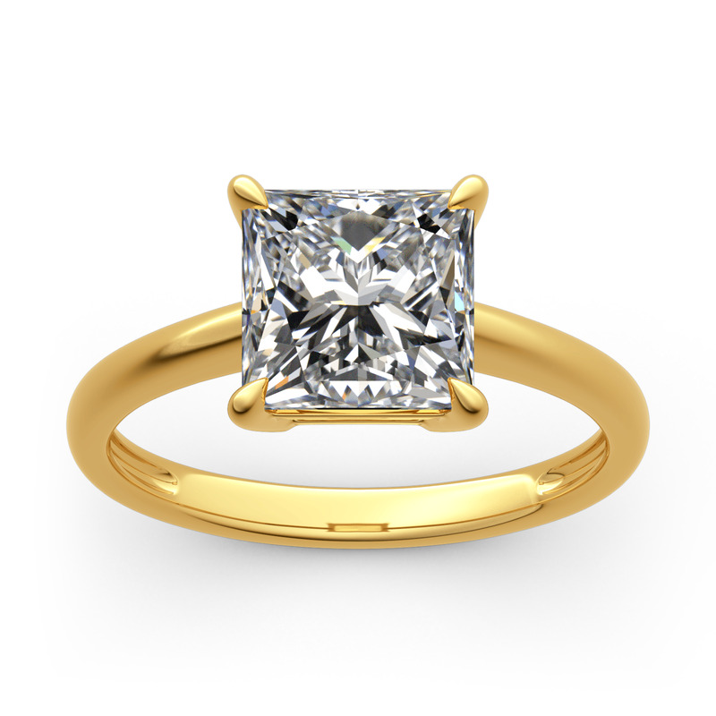 Classic and simple, this engagement ring is a brilliant addition to her wardrobe.This ring showcases a shimmering princess-cut center stone in a traditional four-prong setting.With its classic design and sparkling stone, this ring is a beautiful complement to any attire. Take the ring without any hesitation, and it won't disappoint you!
