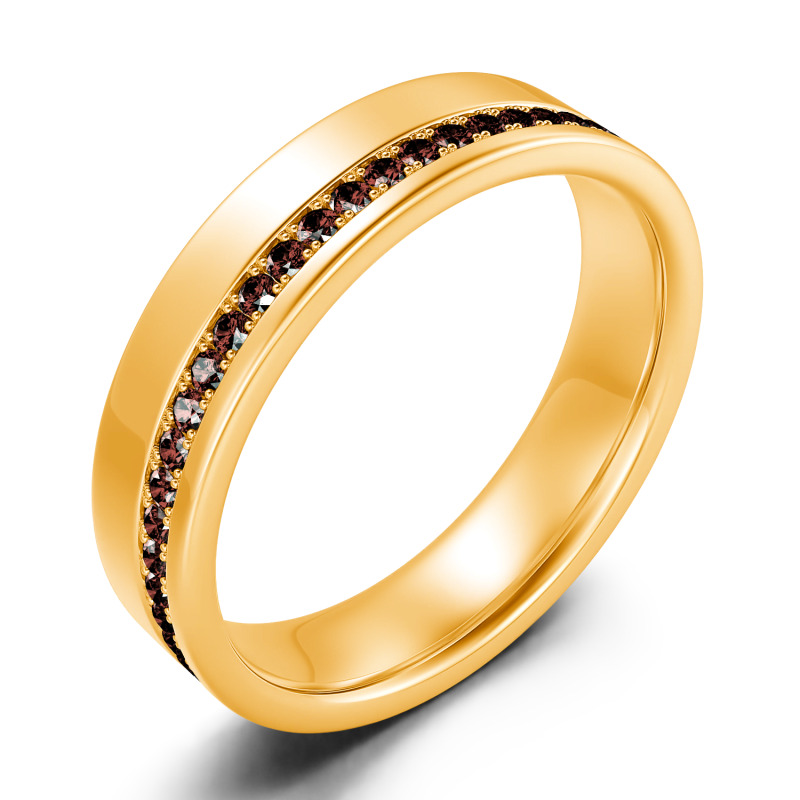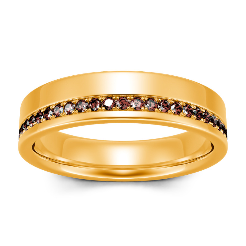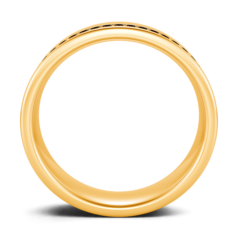 On your anniversary or wedding day, honor the man you love with a ring worthy of his affections. This unique design features a ribbon of petite channel-set stones along the edge of the modern polished look. Buffed to a brilliant shine, this ring is an elegant symbol of your marriage commitment.