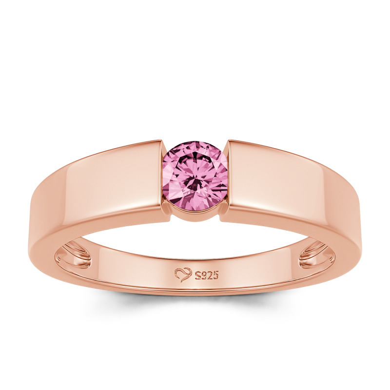 Jeulia Simple Round Cut Men Engagement Ring Sterling Silver