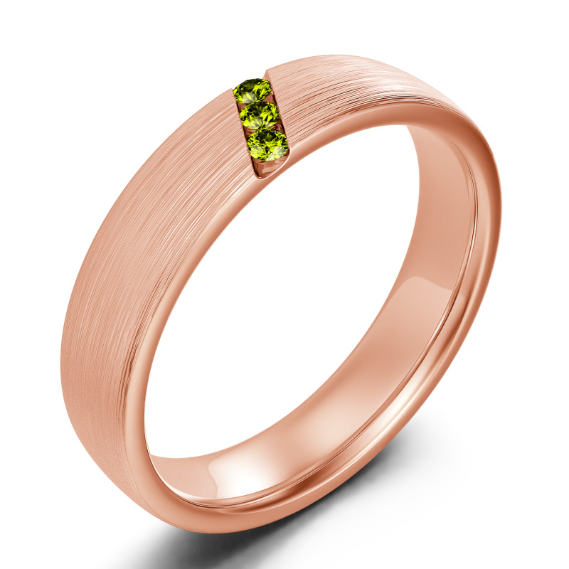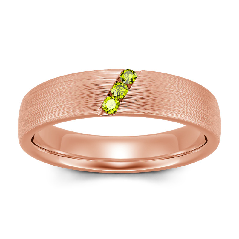 He'll appreciate the sleek design of this moissanite wedding band. A striking diagonal line of stones creates a unique, eye-catching design in this matte-brushed ring. The inside of the shank is rounded for comfortable wear. Buffed to a brilliant luster, this comfort-fit wedding band seals your vows in style.