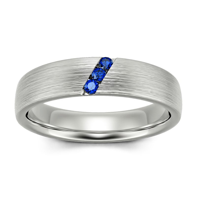 Jeulia Three Stone Round Cut Sterling Silver Men's Band