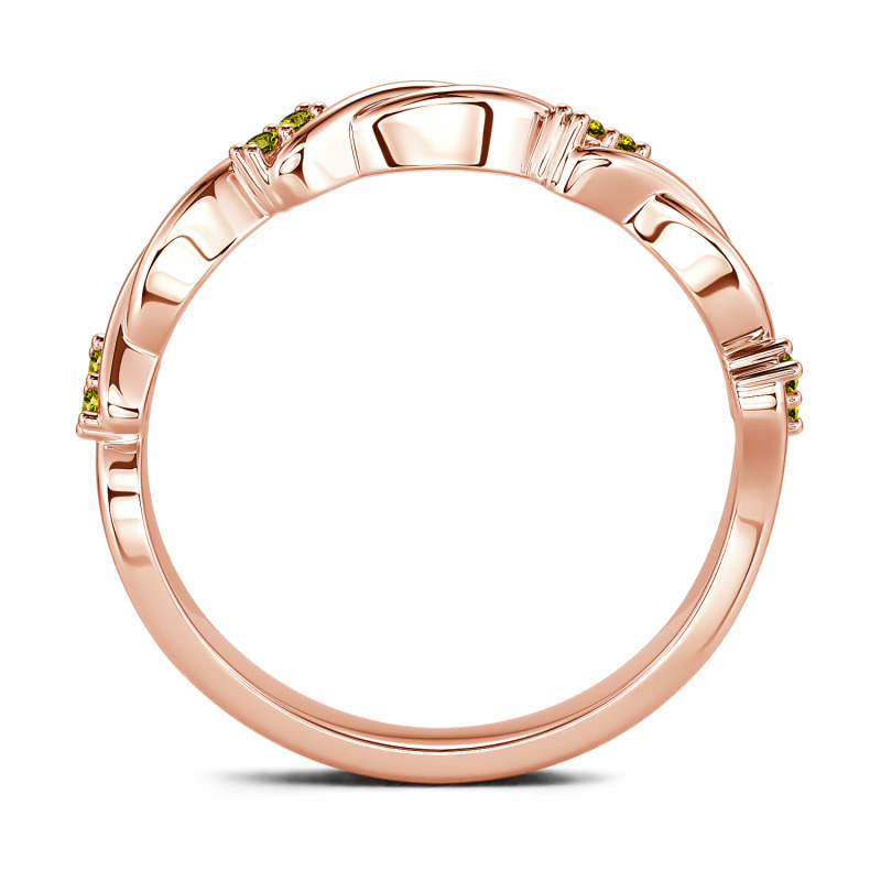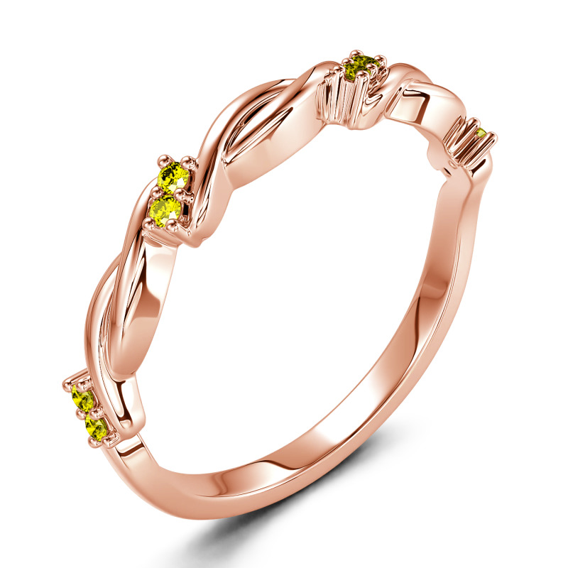 A look she'll treasure, this sparkling moissanite twist band marks your latest chapter with style. Ribbons of high polished precious metal appear gracefully woven together and adorned with clusters of sparkling stones in this unique and whimsical ring. Gleaming with your love, this slender wedding band is a true reminder of your everlasting love.