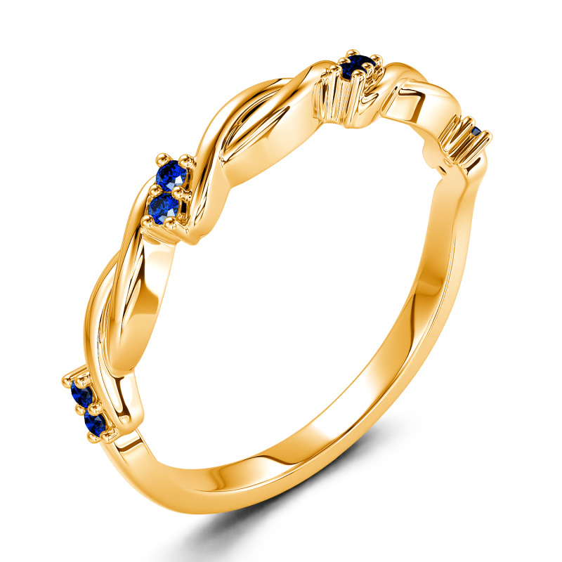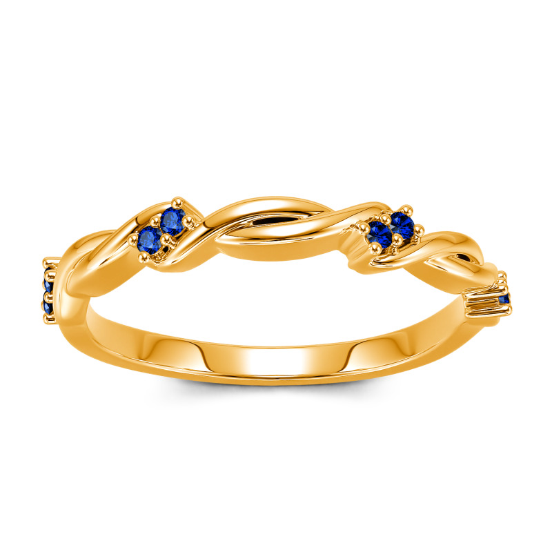 A look she'll treasure, this sparkling moissanite twist band marks your latest chapter with style. Ribbons of high polished precious metal appear gracefully woven together and adorned with clusters of sparkling stones in this unique and whimsical ring. Gleaming with your love, this slender wedding band is a true reminder of your everlasting love.