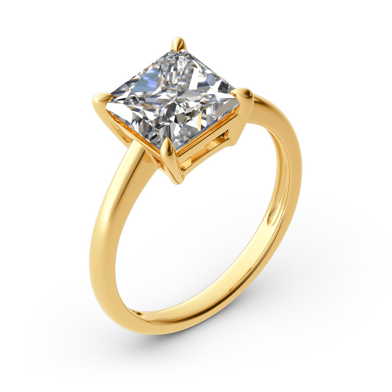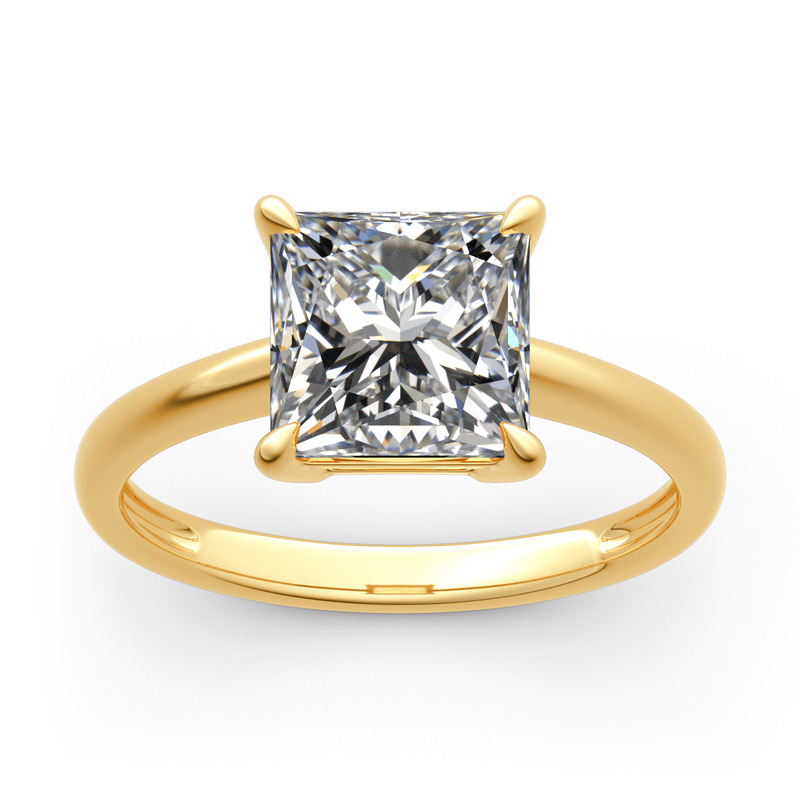 Classic and simple, this engagement ring is a brilliant addition to her wardrobe.This ring showcases a shimmering princess-cut center stone in a traditional four-prong setting.With its classic design and sparkling stone, this ring is a beautiful complement to any attire. Take the ring without any hesitation, and it won't disappoint you!
