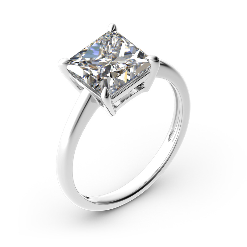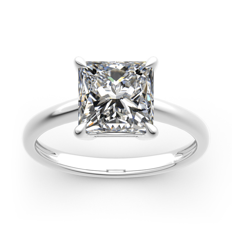 Classic and simple, this engagement ring is a brilliant addition to her wardrobe.This ring showcases a shimmering princess-cut center stone in a traditional four-prong setting.With its classic design and sparkling stone, this ring is a beautiful complement to any attire. Take the ring without any hesitation, and it won't disappoint you!