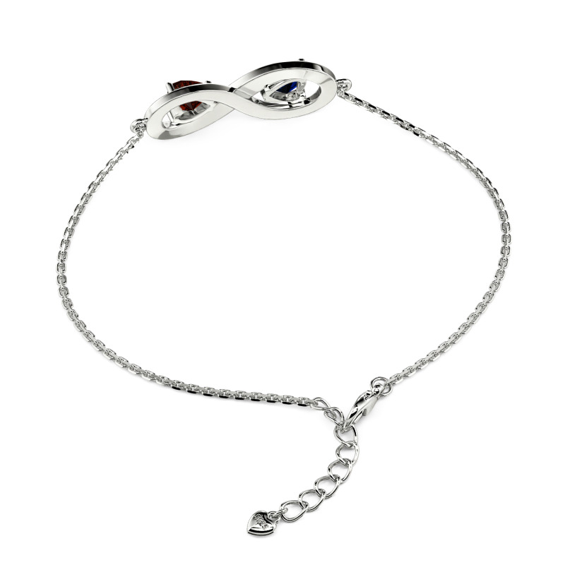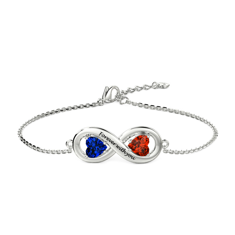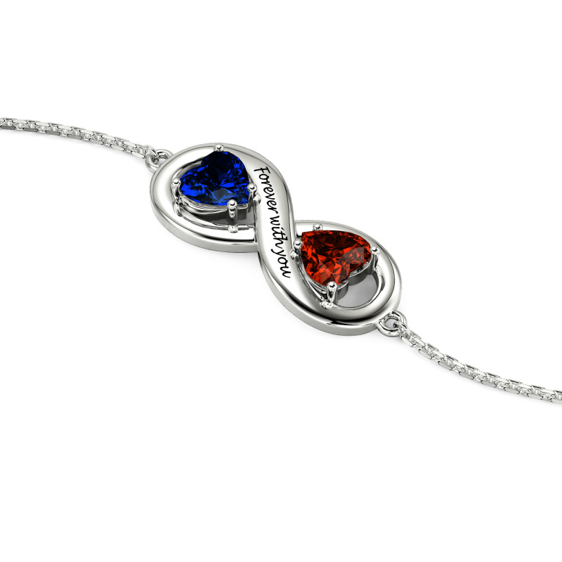 With the infinity symbol at the heart of the design, this custom infinity heart bracelet showcases the theme of eternity and love. The two heart-shaped stone are amethyst and ruby, symbolizing the depth and passion of emotions, intertwined with each other to form a unique double heart design. The sparkle of the gemstones is enhanced by the silver chain, resembling the sparkling moments of love. The middle part of the infinity heart bracelet can be customized with engraving, allowing the wearer to remember the deep commitment and memories with their loved one, deepening the emotional value of this jewelry. The product provides customization services, customers can not only choose different metal colors, but also according to personal preferences custom gemstone hue, giving each bracelet a unique personality and connotation.