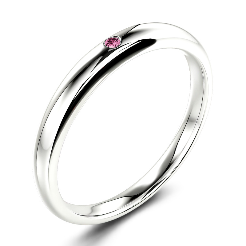 This classic moissanite band is a symbol of enduring love. Timeless and traditional, it features an alluring addition of a round-cut stone set into its band. The tone imbues this piece with a contemporary resonance. Dedicatedly created, the ring serves as a visual reminder of a loved one, making a natural choice for a wedding ring.