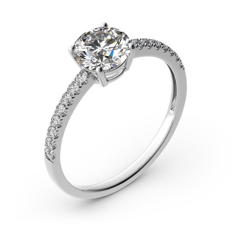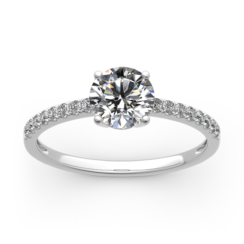 Timeless and elegant, this engagement ring is a classic look she'll adore. The eye is drawn to the round cut center stone in a traditional four-prong setting. With additional small stones on the shank, the ring sparkles crazily from every angle. Designed to take her breath away and record your love, the ring is the best choice to propose to her.