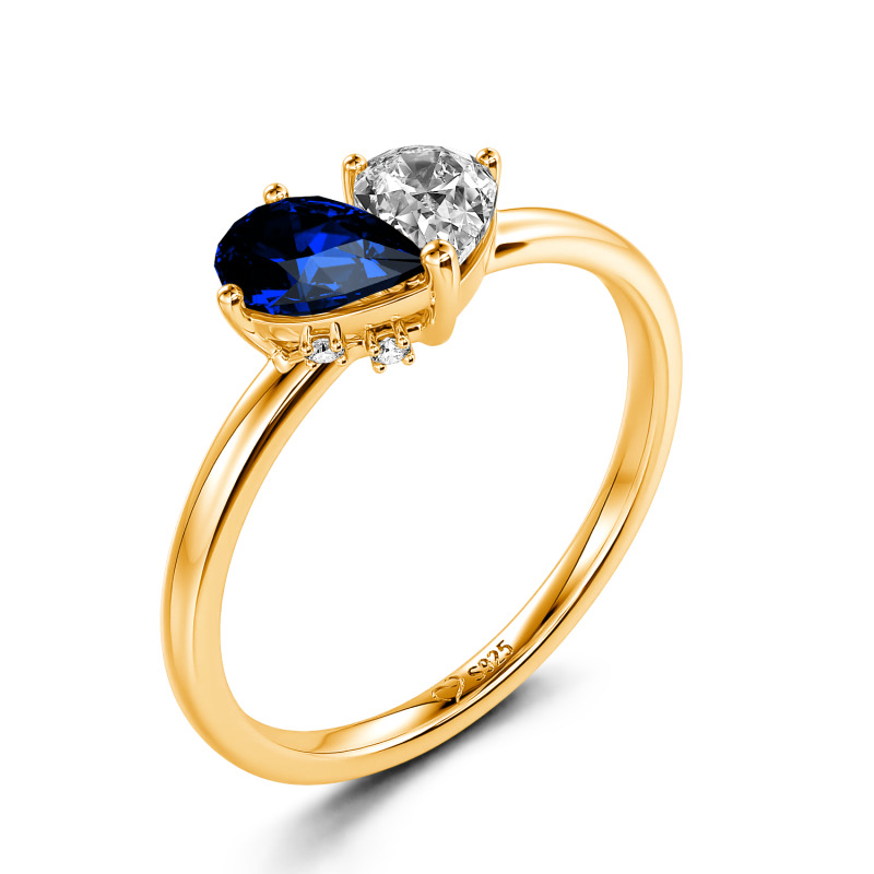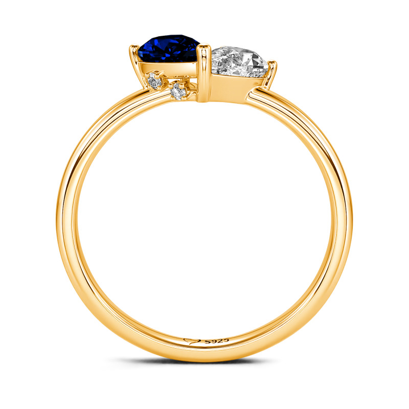 Two pear cut stones are arranged to form a heart at the center of the design. Two tiny stone accents at the base of the piece anchor it in place. They are set together to form this petite heart stacker. You can choose different-color stones for the center stone to make a unique look for the ring. Just design a piece of jewelry by yourself.